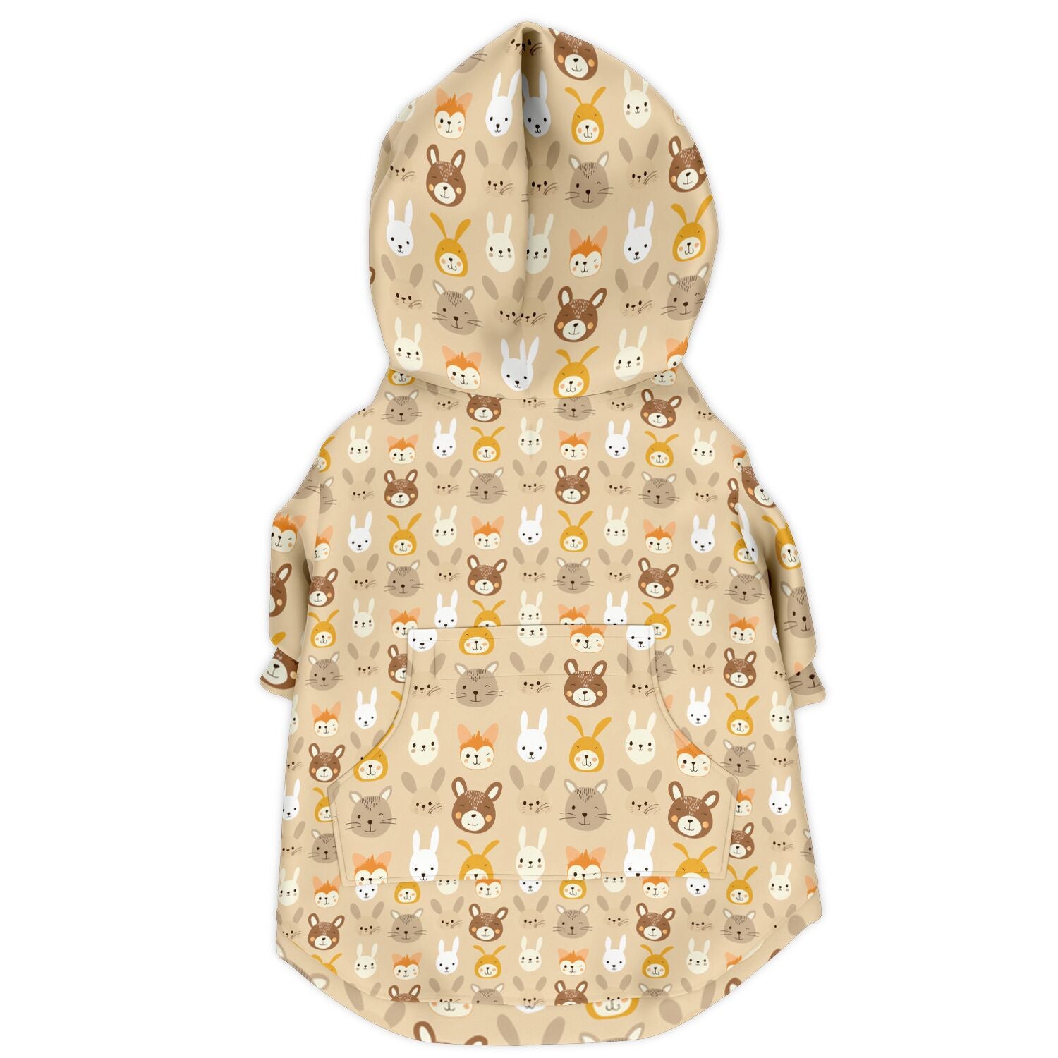 Let your dog be adventurous without compromising comfort and mobility with this all-over print zip-up hoodie. Made from a soft and durable fabric. The smooth fabric will make this your dog's most comfy zip-up hoodie ever! It also comes with a small opening on the upper back for dog harness users. And a sturdy velcro pocket located on the back to store some treats. The front zipper closure also provides easy fitting for your dog.