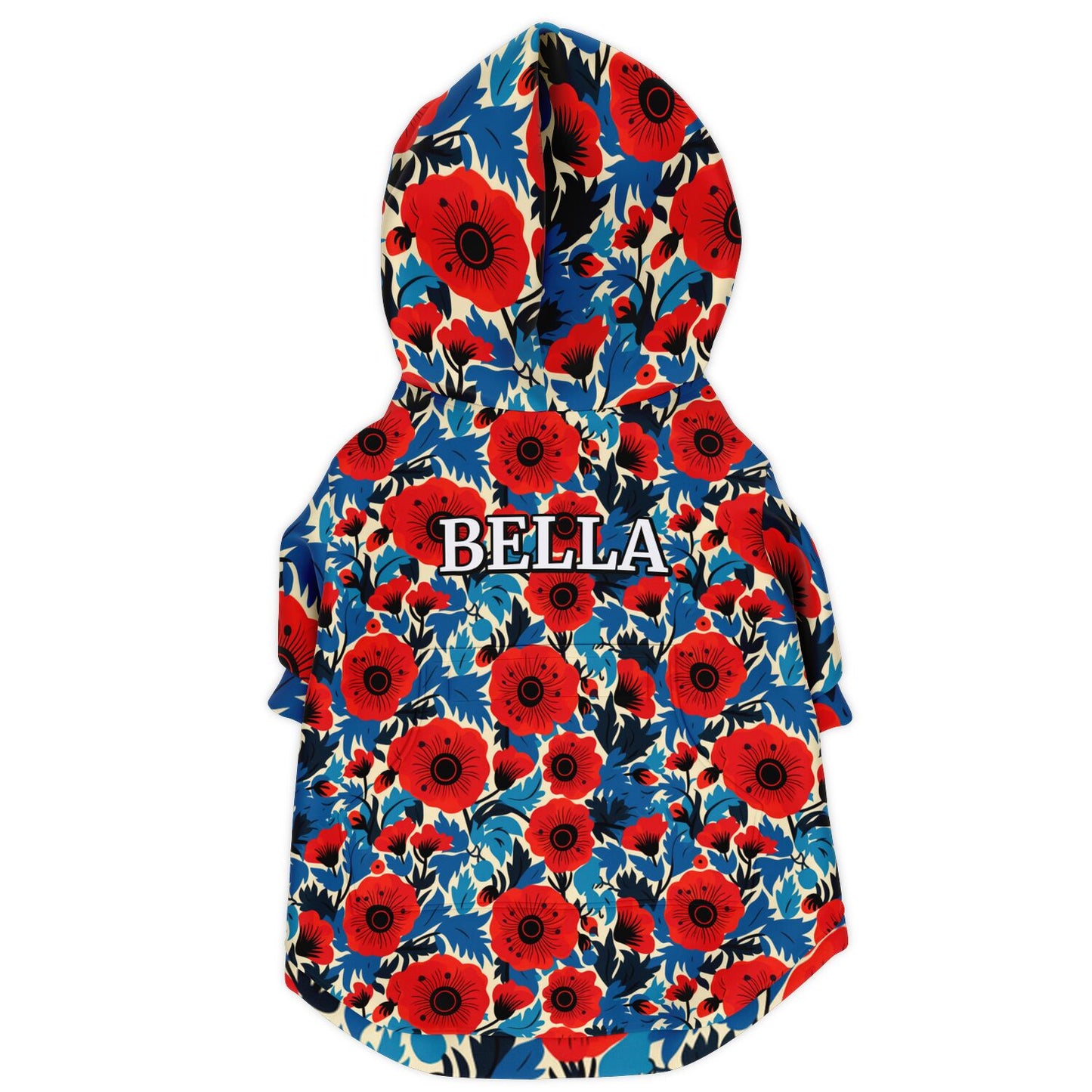 Let your dog be adventurous without compromising comfort and mobility with this all-over print zip-up hoodie. Made from a soft and durable fabric that has a cotton feel to it. The brushed fleece on the inside will make this your dog's most comfy zip-up hoodie ever! It also comes with a small opening on the upper back for dog harness users. And a sturdy velcro pocket located on the back to store some treats. The front zipper closure also provides easy fitting for your dog.