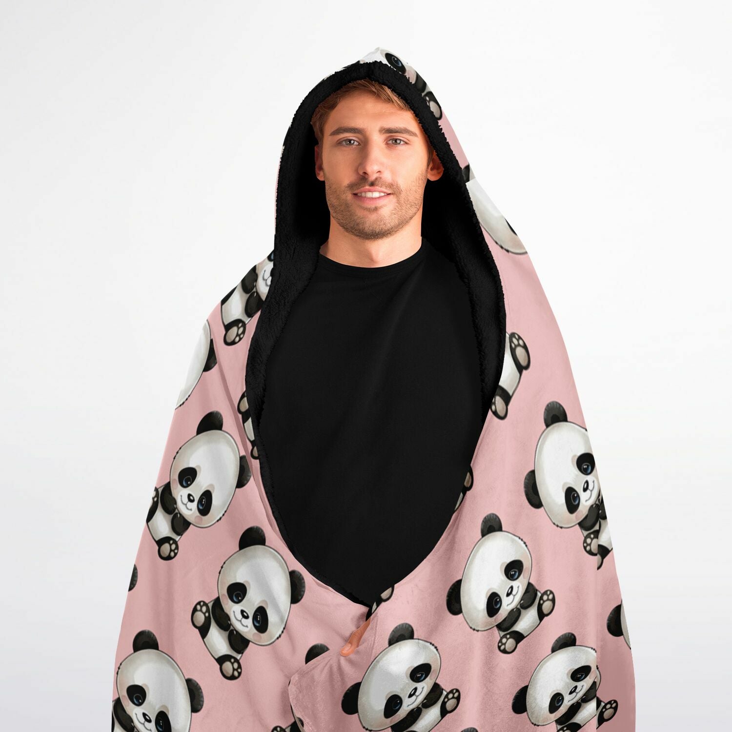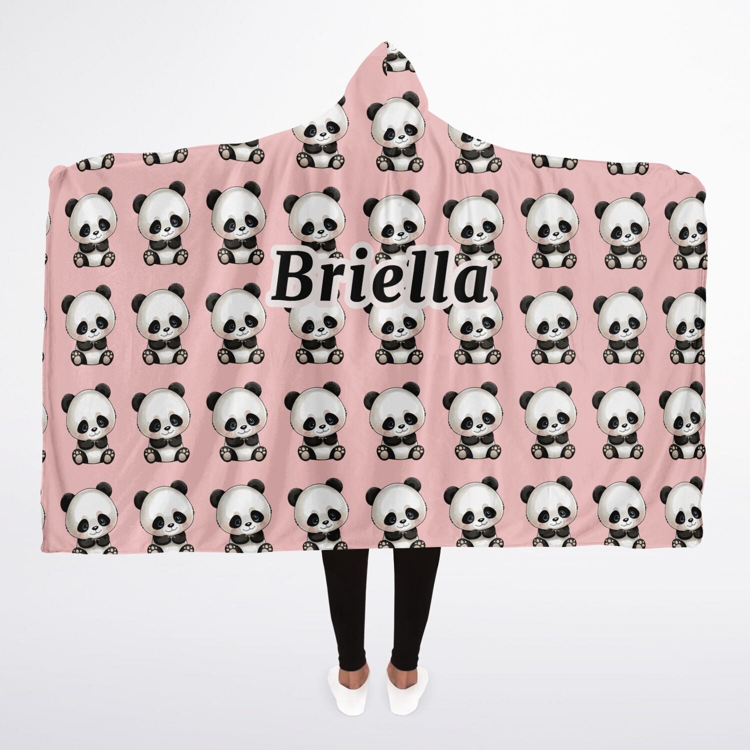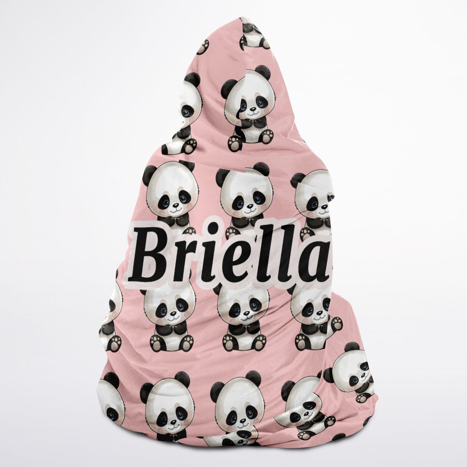 Custom Name/Text Hooded Blanket Micro Fleece - Panda Pink