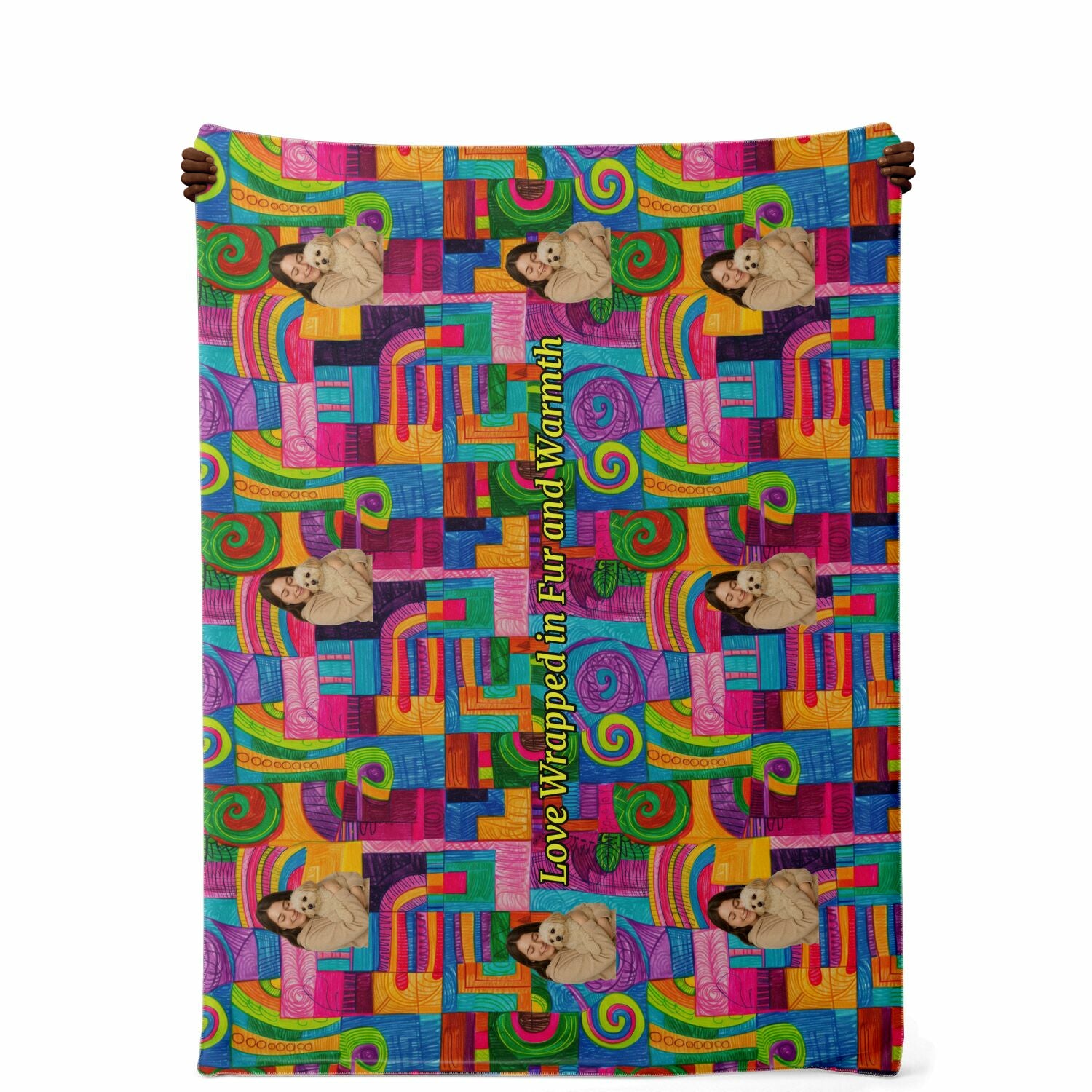 Custom Text / Photo Premium Microfleece Blanket - All over Print - Geometric